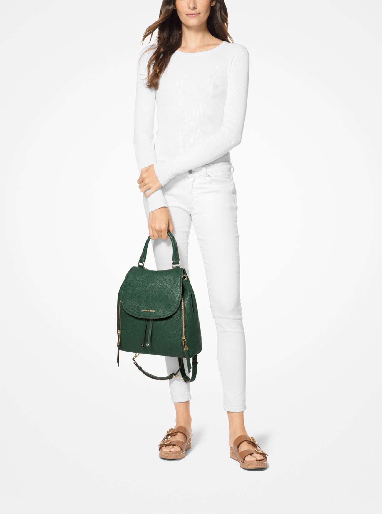 Balo Michael Kors hàng hiệu VIV LG BACKPACK LEATHER-MOSS, balo Michael Kors hàng hiệu size lon, balo MK chính hãng, balo MK chính hãng hàng hiệu màu xanh lá, balo MK du lịch, balo Michael Kors công sở đựng vừa laptop không bán hàng fake, không bán hàng xuất khẩu loại 1 tại Việt Nam.