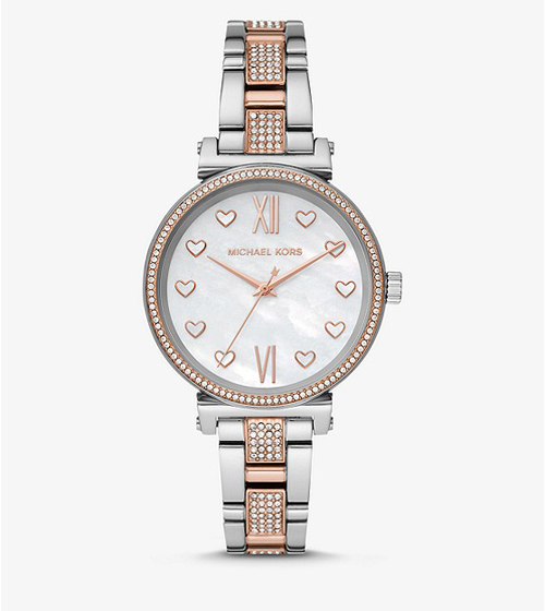 – Sofie Pavé Two-Tone Watch là lựa chọn cho bạn khi tìm kiếm các mẫu đồng hồ Michael Kors nữ thanh mảnh cực kỳ nữ tính. Chọn tông màu bạc kim loại cùng thiết kế mỏng gọn, chiếc đồng hồ case 36 mm nhấn nhá với các đường viền vàng hồng và đá pave lấp lánh, thêm chút thùy mị mà chẳng quá kiêu sa, trái lại là 1 thiết kế thân thiện, bình dị dễ dàng cho các nàng mang theo hàng ngày cho nhu cầu và sở thích phụ kiện trang trí của mình.