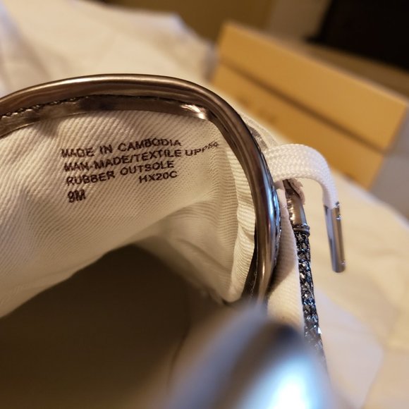 Logo trên giày cũng cực kỳ tinh tế, sắc nét, đặc biệt là các logo kim loại rất sắc sảo, dày chắc không dễ bị biến dạng do ngoại lực, lớp mạ sáng bóng phản quang tốt đảm bảo không bong tróc, khó trầy xước.
