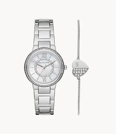 Đồng hồ Michael Kors MK1033 Stainless Steel Watch and Bracelet Gift Set
