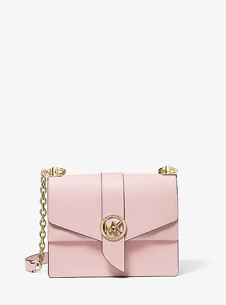 Túi Michael Kors đeo vai màu hồng 32T1LGRC5L Saffiano Leather Crossbody Bag:Túi đeo chéo Greenwich bằng da Saffiano là điểm nhấn hoàn thiện tối ưu để tạo ra một cái nhìn bóng bẩy. Nó được thiết kế theo hình bóng có cấu trúc với kiểu đóng khóa trao tay kiểu dáng đẹp và dây đeo bằng vàng có thể điều chỉnh được, có thể để điện thoại, hộp đựng thẻ và chìa khóa của bạn trong nội thất của túi.