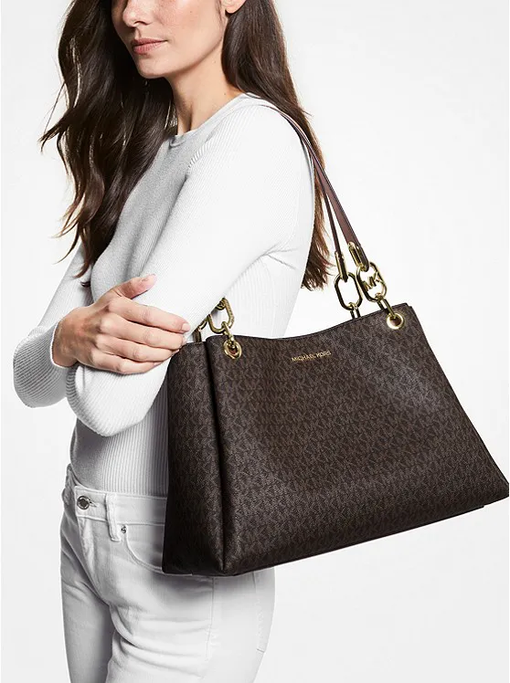 Túi Michael Kors Công Sở Trisha Large Brown Logo Shoulder Bag. Thiết kế đơn giản, bắt mắt, sang trọng, kết hợp đi chơi, đi tiệc, gặp gỡ bạn bè.