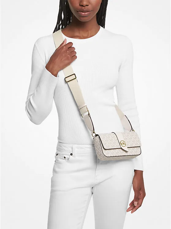 Túi Xách Michael Kors Mini Greenwich Extra-Small Logo Sling Crossbody Bag. Mini nhỏ gọn đi đâu cũng thích để vừa cốp xe nhỏ nhất. Để thỏi son, ví mini, điện thoại là tuyệt vời.