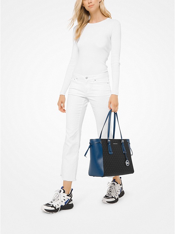 Túi xách Michael Kors hàng hiệu đeo vai loại lớn Voyager Medium Logo Tote, giỏ xách MK chính hãng giành cho nữ, túi xách michael kors hàng hiệu màu xanh size lớn, túi xách MK hàng hiệu dạo phố, túi xách MK văn phòng, không bán hàng fake, không bán hàng xuất khẩu loại 1 tại Việt Nam.
