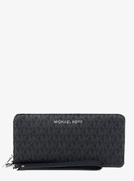 Ví Michael Kors 35H8STVT3B Black Jet Set Travel Large Logo Continental Wristlet: Ví Michael Kors cầm tay loại lớn giúp bạn đựng được điện thoại kích thước lớn như Iphone Pro 11, Samsung,… Bạn còn có thể đeo chiếc ví này để đến các bữa tiệc như 1 loại trang sức cho phong cách của bạn.