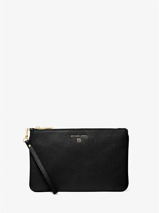 Ví Michael Kors Cầm Tay Màu Đen Large Pebbled Leather Wristlet. Ví cầm tay Dáng dài – Thời trang – Tinh tế và Sang trọng! Có khóa kéo giúp bảo vệ an toàn tiền bạc và giấy tờ cá nhân. Tọa nên sư xinh xắn và nữ tính.